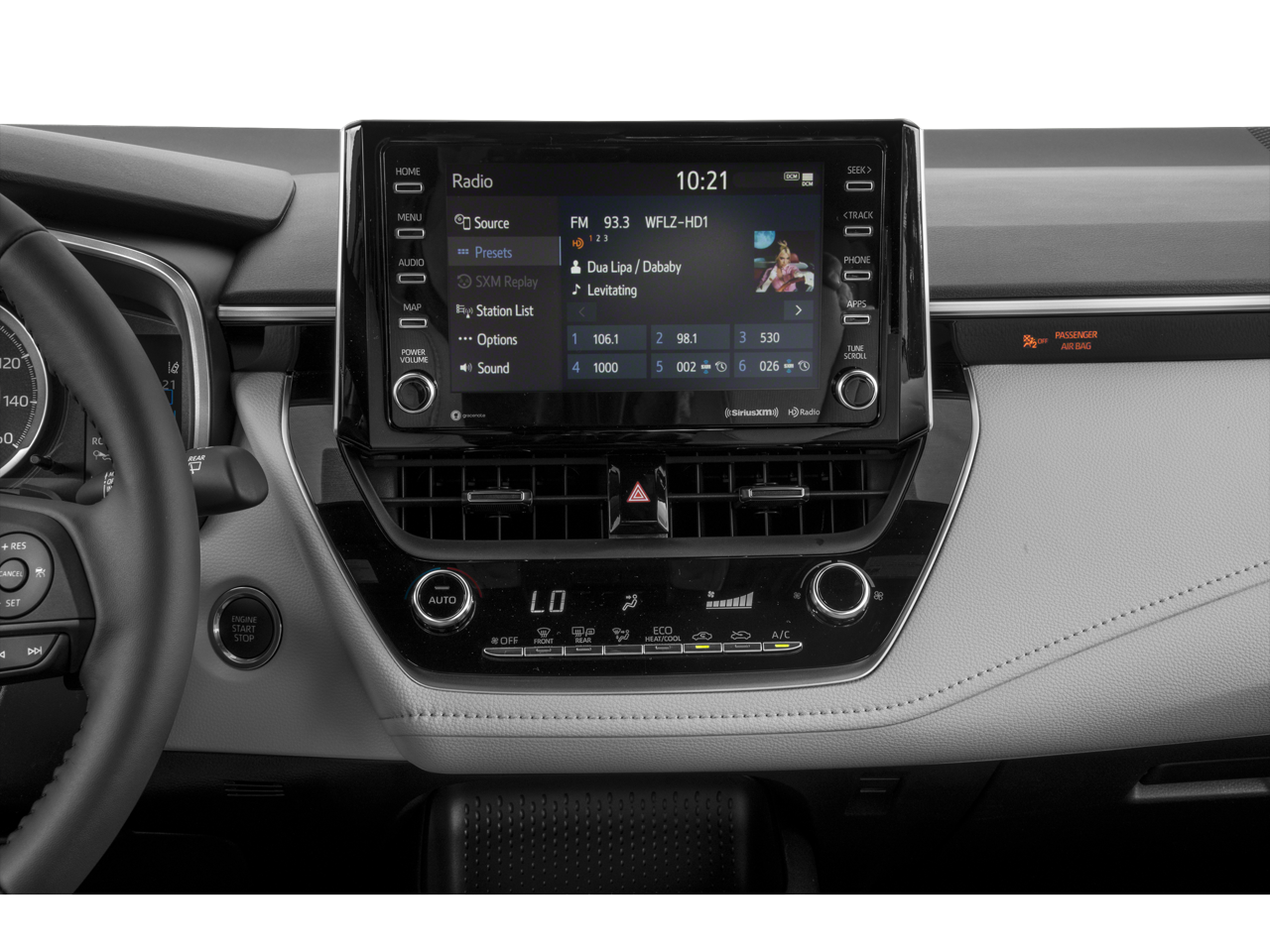 - Radio: Audio -inc: 8" touchscreen, 6 speakers, Android Auto, Apple CarPlay, Amazon Alexa compatible, USB media port, 2 USB charge ports, hands-free phone capability, music streaming via Bluetooth® wireless technology and SiriusXM w/3-month All Access trial, See toyota.com/audio-multimedia for details, Connected Services - Safety Connect w/1-year trial and Wi-Fi Connect w/up to 2 GB within 3-month trial, See toyota.com/connected-services for details