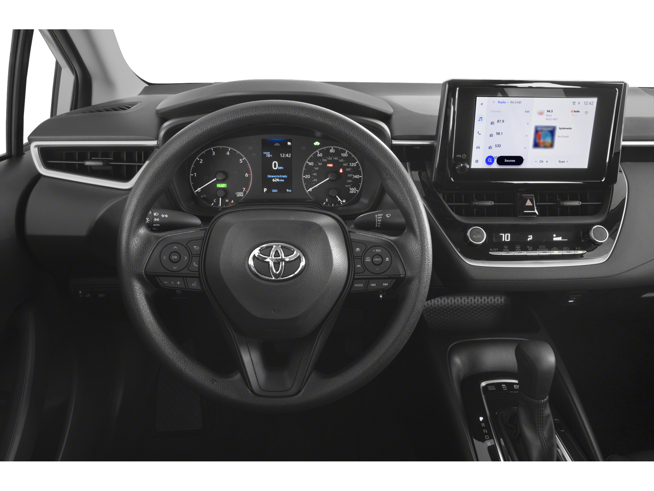 1.8L DOHC 16V VVT. 1.8L DOHC 16V VVT, 4-Wheel Disc Brakes, 6 Speakers, ABS brakes, Air Conditioning, AM/FM radio: SiriusXM, Auto High-beam Headlights, Automatic temperature control, Brake assist, Bumpers: body-color, Delay-off headlights, Driver door bin, Driver vanity mirror, Dual front impact airbags, Dual front side impact airbags, Electronic Stability Control, Emergency communication system: Safety Connect (up to 10-year trial subscription), Exterior Parking Camera Rear, Four wheel independent suspension, Front anti-roll bar, Front Bucket Seats, Front Center Armrest, Front reading lights, Fully automatic headlights, Illuminated entry, Knee airbag, Low tire pressure warning, Occupant sensing airbag, Outside temperature display, Overhead airbag, Panic alarm, Passenger door bin, Passenger vanity mirror, Power door mirrors, Power steering, Power windows, Premium Fabric Seat Trim, Radio data system, Radio: 8 Toyota Audio Multimedia, Rear anti-roll bar, Rear seat center armrest, Rear side impact airbag, Rear window defroster, Remote keyless entry, Speed control, Split folding rear seat, Steering wheel mounted audio controls, Tachometer, Telescoping steering wheel, Tilt steering wheel, Traction control, Trip computer, Variably intermittent wipers, and Wheels: 16 Wide Vent Steel.